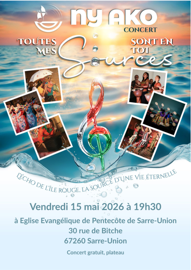 Ils seront à l’église protestante de Zittersheim (67290) le jeudi de l’ascension 14 mai à 17h00. Ils seront à l’église ADD de Sarre Union le vendredi 15 mai et à l’EPIS à Strasbourg le samedi 16 mai à 19h30.